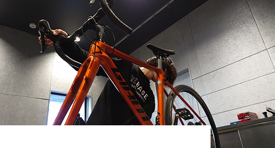 日常のメンテナンスからレース現場まで「経験」と「確かな技術」を持ったスタッフが作業を担当します。パーツ交換や修理はもちろん、他店で購入した自転車のメンテナンスも大歓迎です。