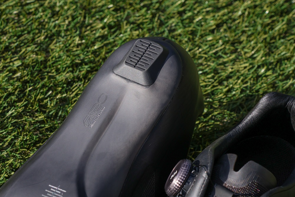 アウトソール:Giro-designed forged UD Carbon fiber / Stainless Steel Hardware / TPU Toe Protection /TPU Replaceable Heel Pad